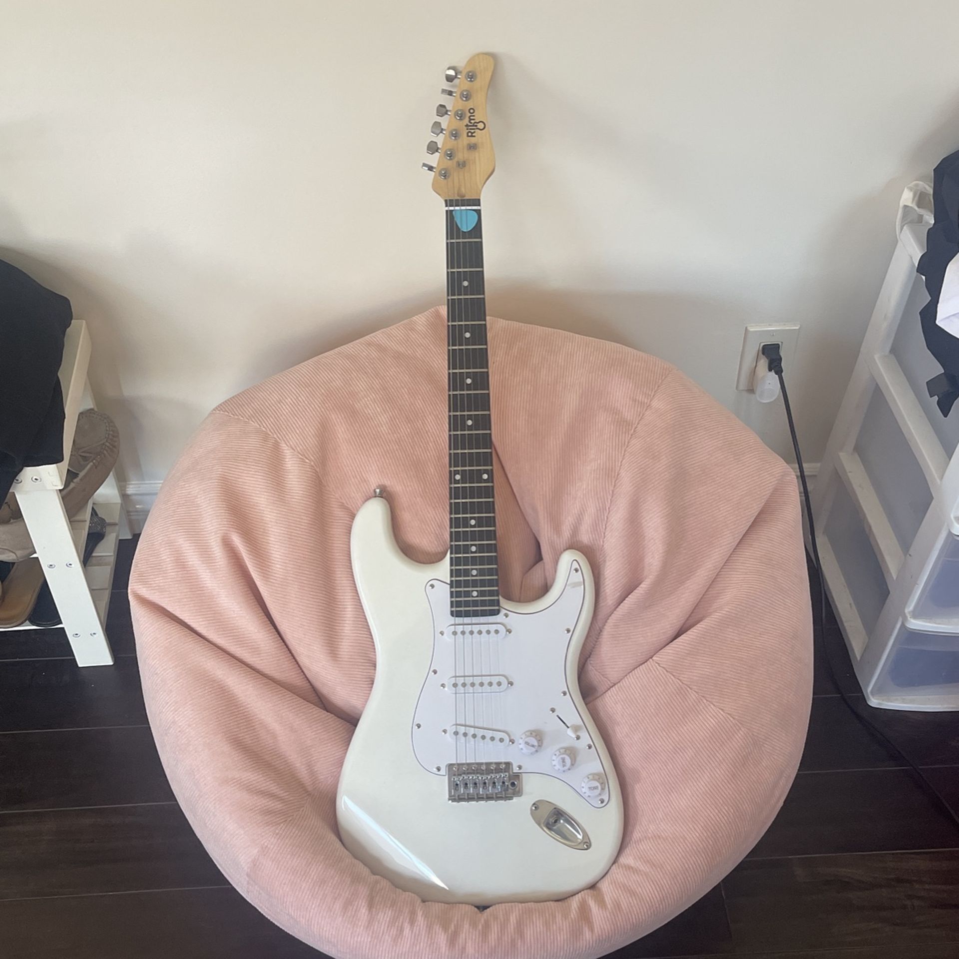 Brand new electric guitar all white in Oakwood comes with bag cover and ox cord to plug-in. An amplifier in perfect condition. Brand new out of the box. Nowhere in tear or scratches.