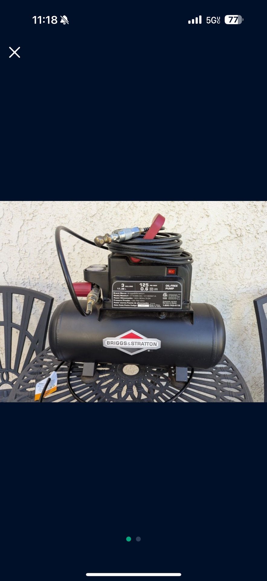 Air compressor, Briggs & Stratton. Flawless Condition.