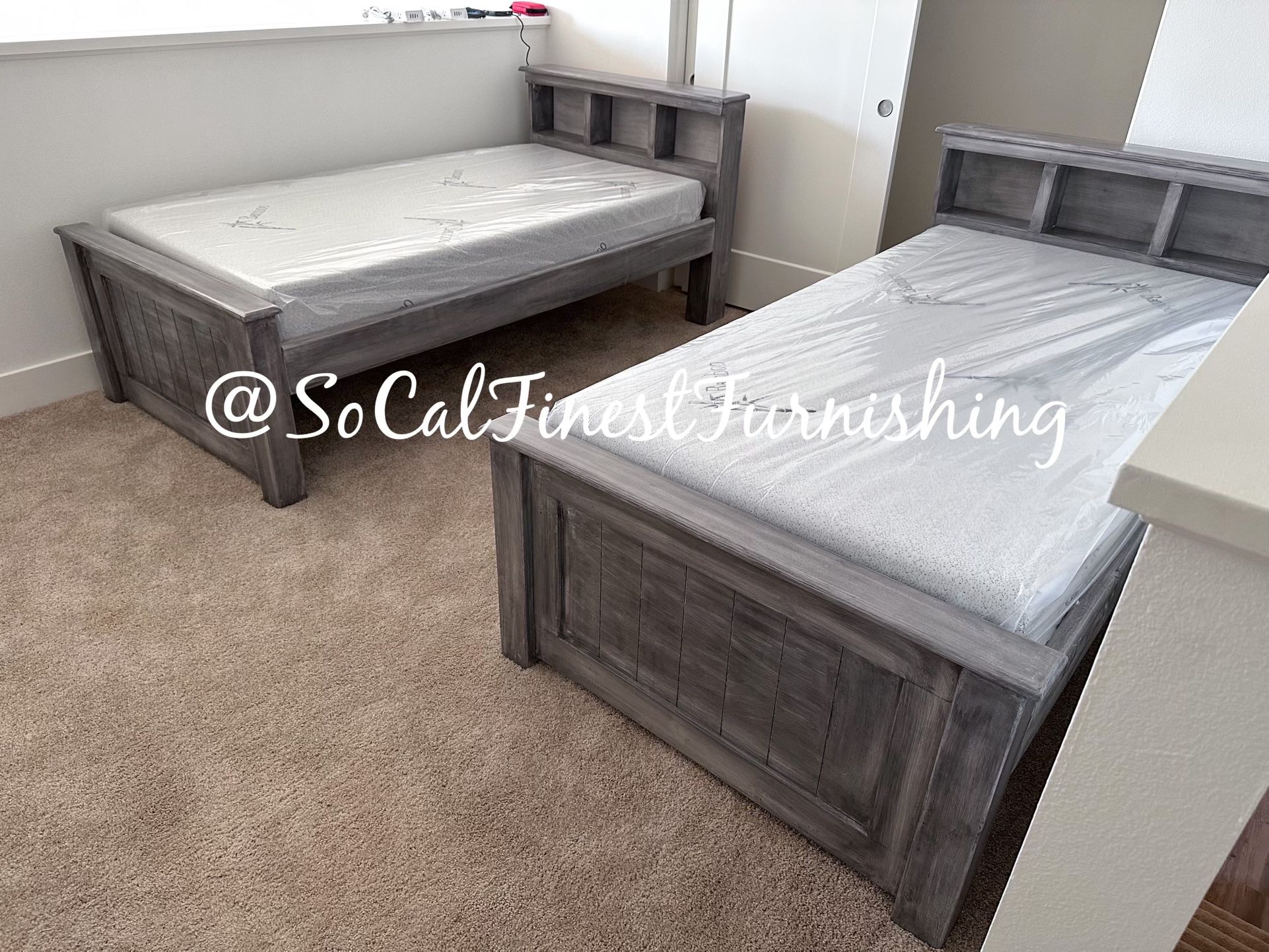 🌳 New 100% Solid Wood Rustic Furniture 🌳Twin bookcase 84 1/2 L x 42 1/2 W HB 36’ 🌳Full bookcase 84 1/2 L x 56” W HB 41’ 🌳Queen bookcase 88 1/2” L x 65” W HB 41 🌳Available In Grey Washed/Dark Espresso 🌳Free Local Delivery Depending On Zip Code 🌳Free Assembly IF Room Is Cleared/Ready 🌳Price Is Not Negotiable, Cash Only 🌳All Sales Are Final 🌳Hablamos Español 🌳Follow Socalfinestfurnishing On Instagram For More Deals