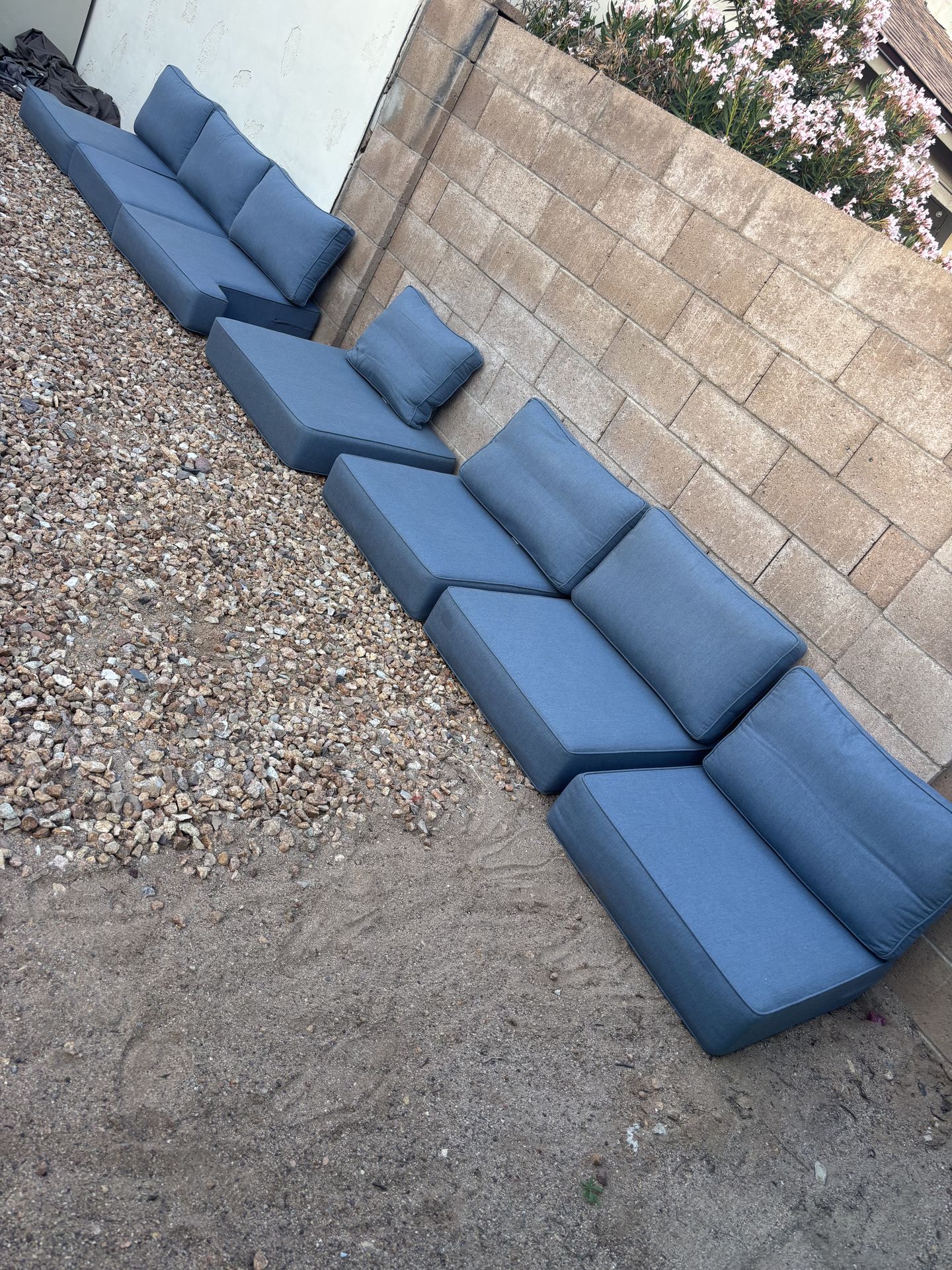 I have seven outdoor sunbrella patio cushions and seven outdoor sunbrella pillows, in a excellent condition, no rips or sun damages, I am selling it as a set, I am not gonna sell one or two pieces,(please do not ask), look at the last picture for measurement, $200 CASH ONLY.