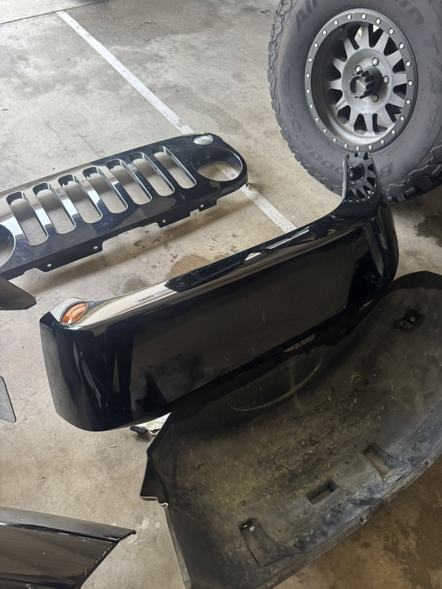 Set of OEM fenders and grill for JK wrangler Fits 2007-2018 2 door models Color match black Fenders come with wheel wells