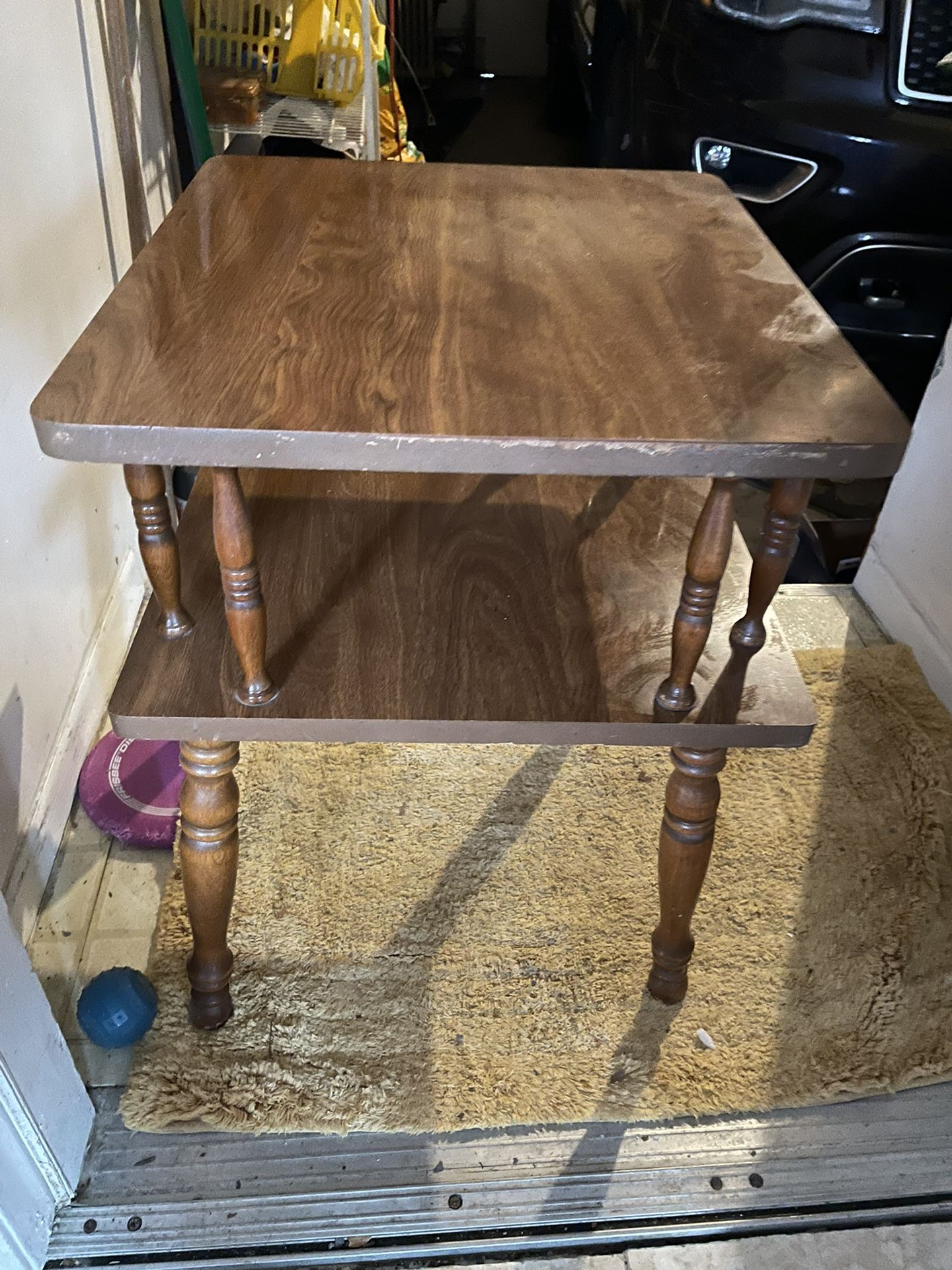 Vintage spindled table. Great condition and pretty sturdy! 18 x 20 x 22 high