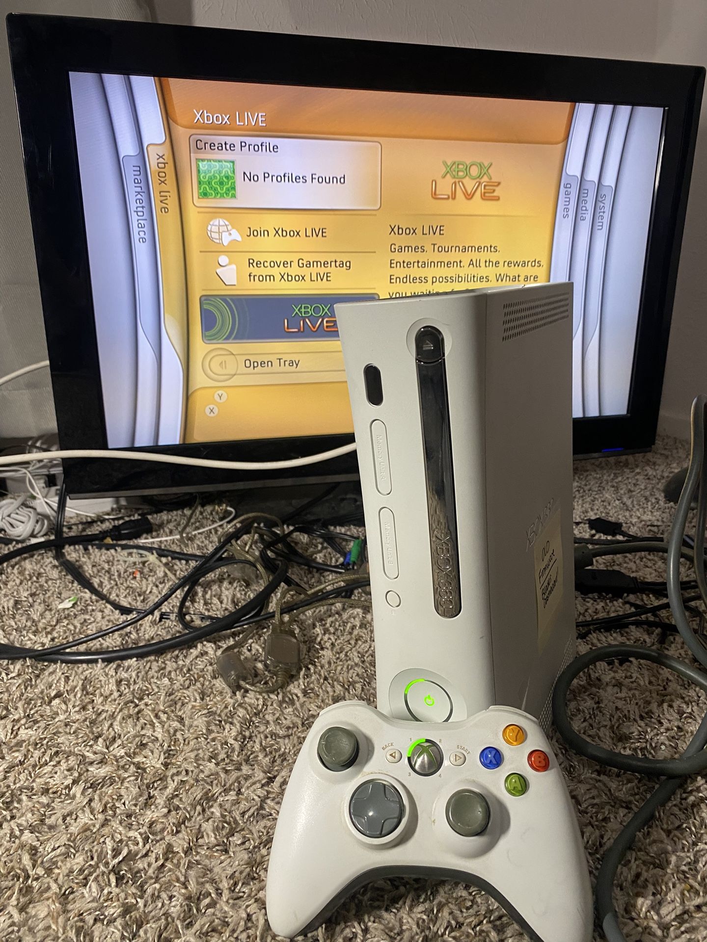 Microsoft Xbox 360 White Blades Dashboard Console W/ Controller & Cords 2.0.6717 Extremely rare Un-updated BLADES xbox Controller + all cords All discs prompt an update Seals intact Has some cosmetic wear