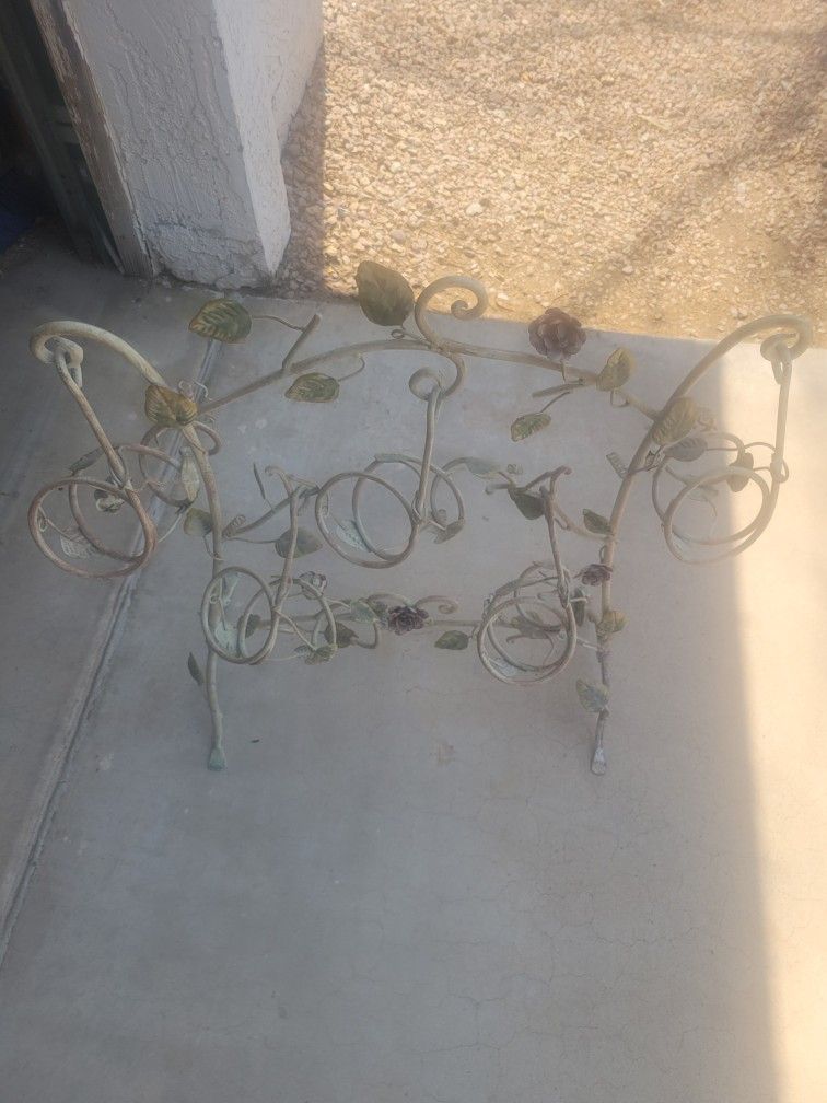 Custom Antique decorative wine rack. Sturdy and beautiful leaf vine design Perfect condition Holds 5 wine bottles
