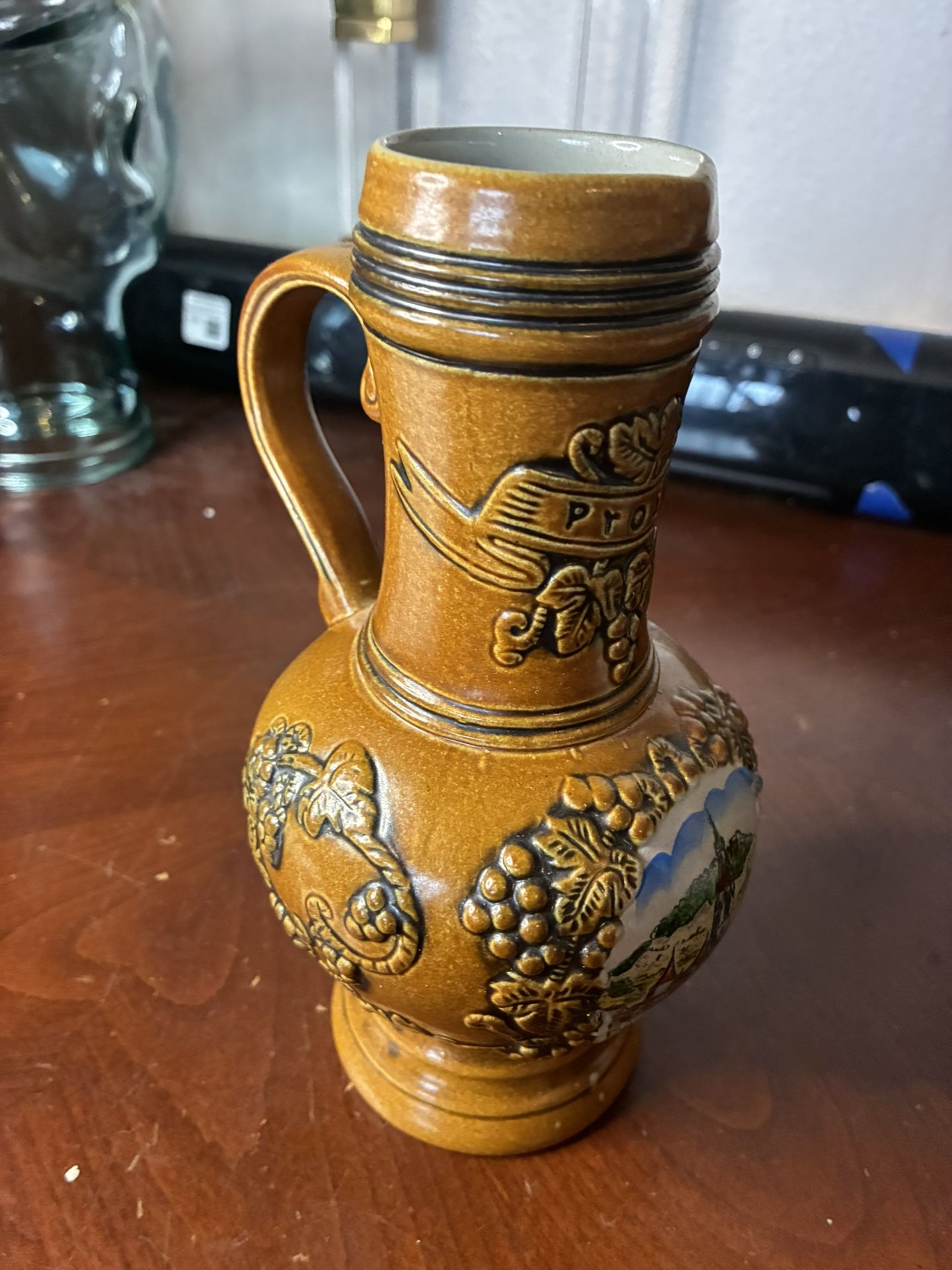 Vintage German King Lidded Pitcher 8" Stoneware
