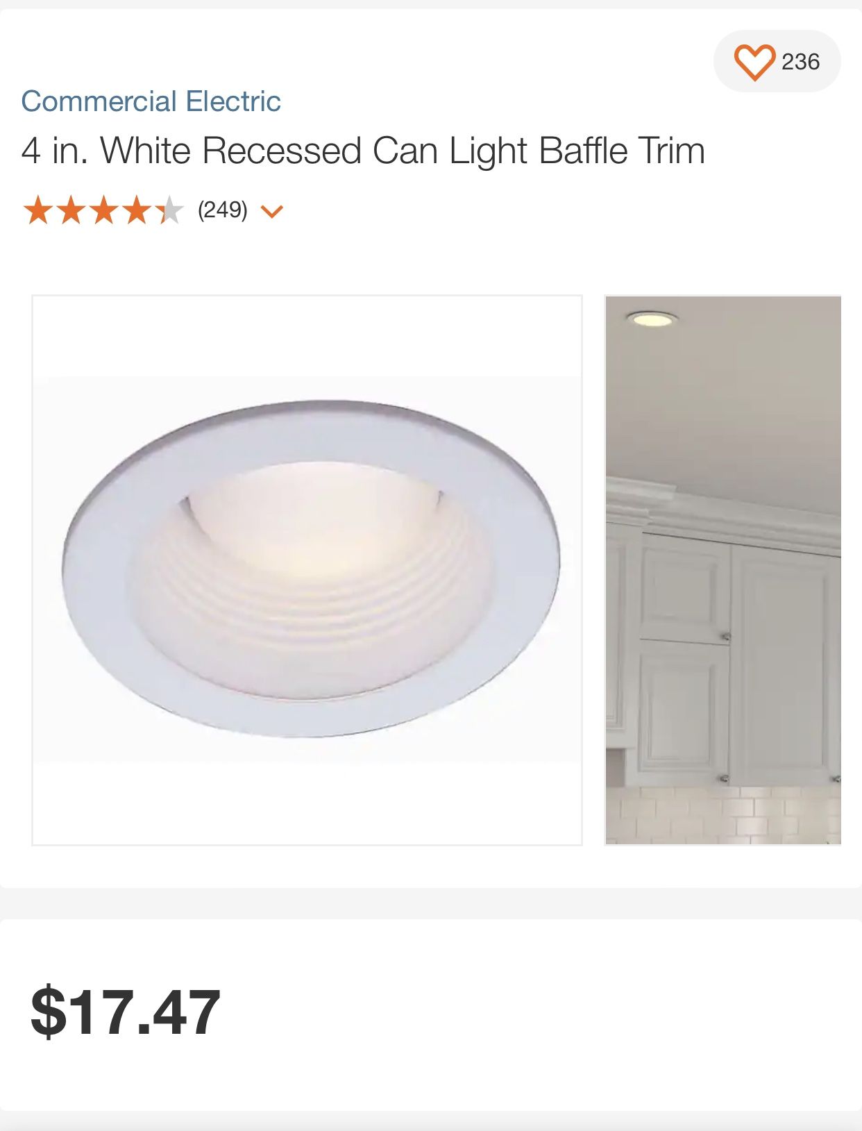 4 In. White Recessed Can Light Baffle Trim