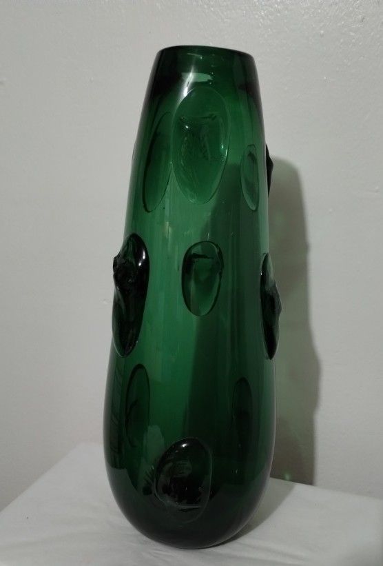 60'S EMPOLI GLASS VASE MADE IN ITALY 15"×6"