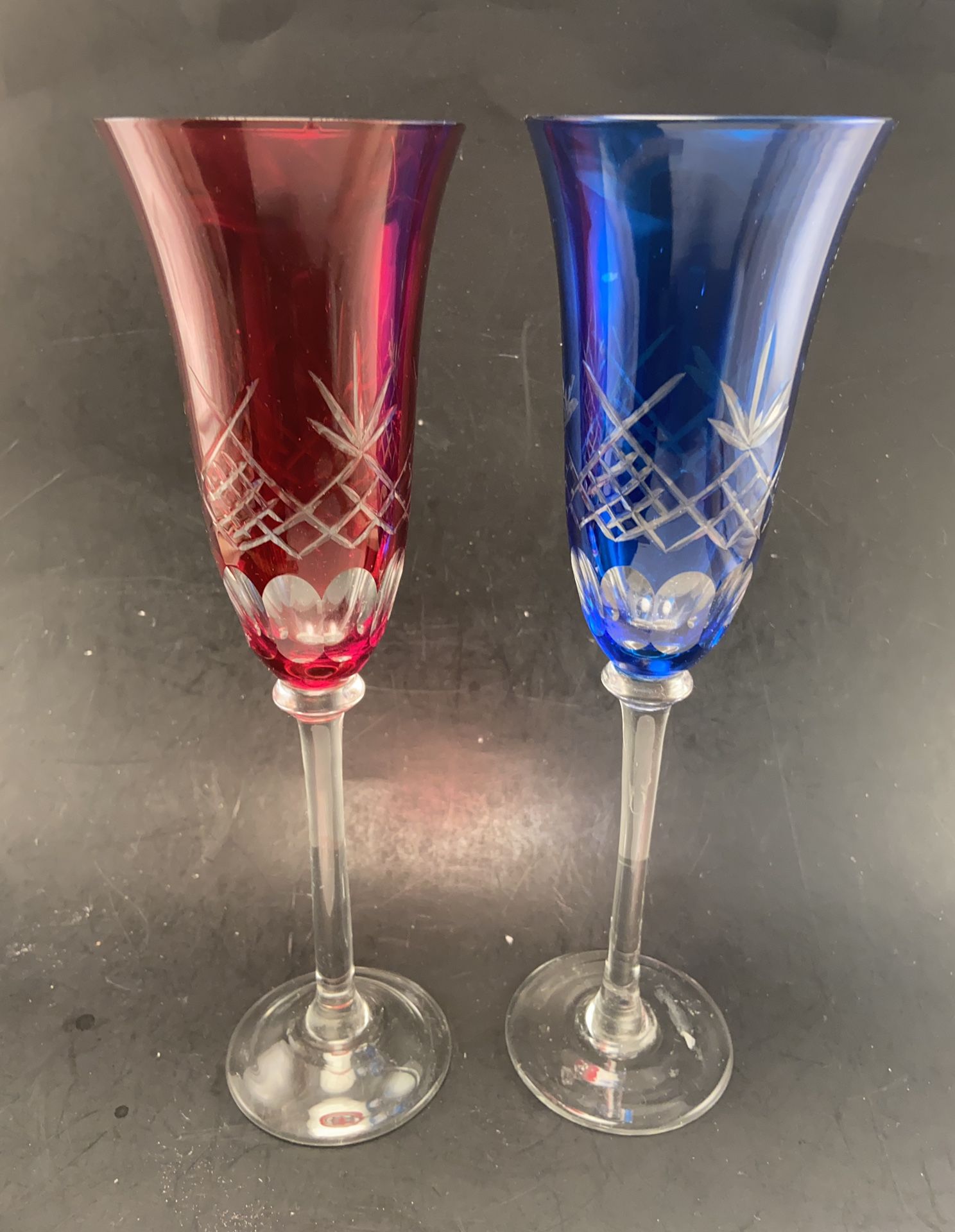 2 Crystal Glass Long Stem Cut To Clear Drink Glasses Barware