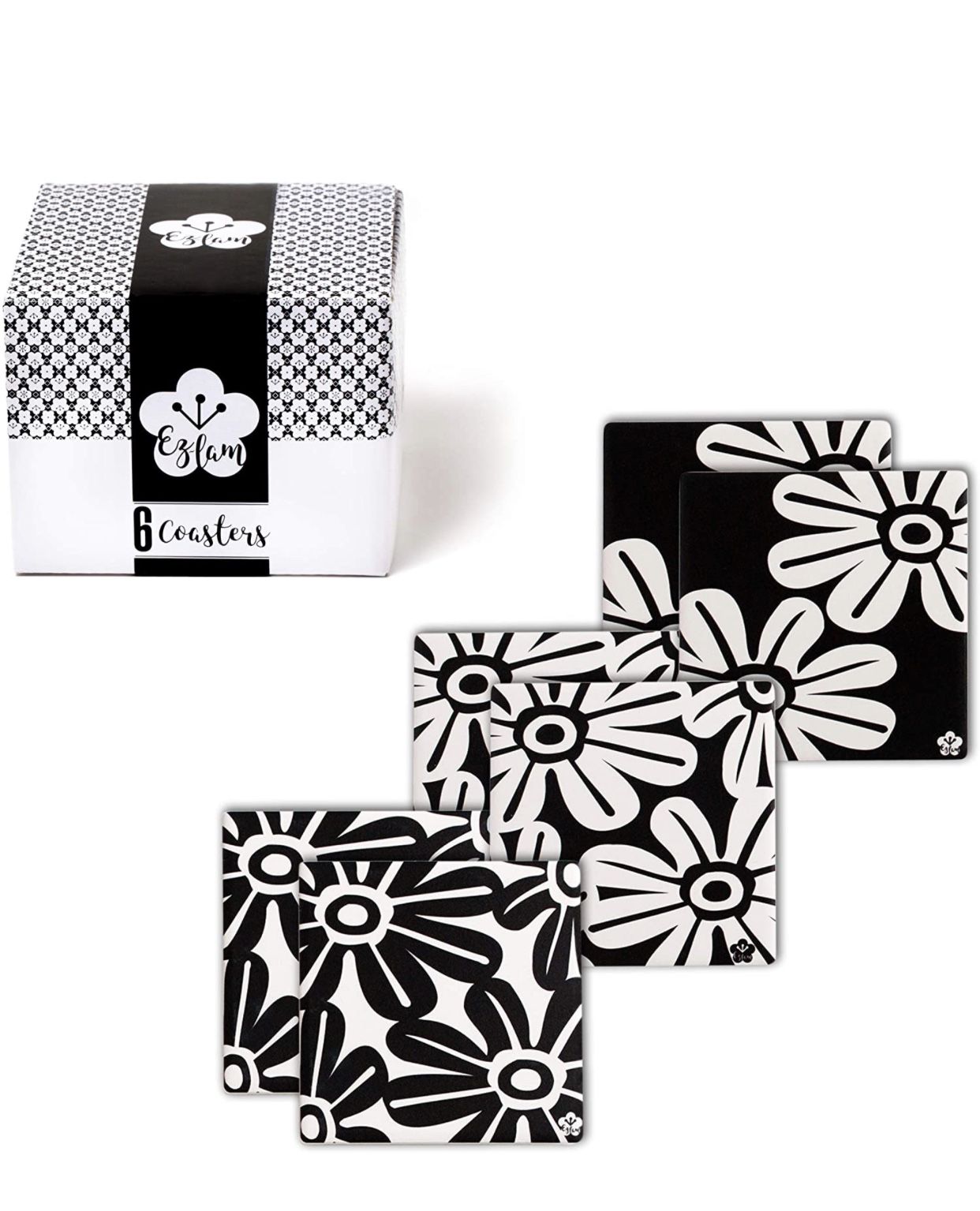 Absorbent Coasters for Housewarming Gifts for Women-Black and White Coasters for Wooden Table-Ceramic Coaster Set Prevents Water Rings on Your Furniture-Cute Coasters with Modern Art Designs-Set of 6