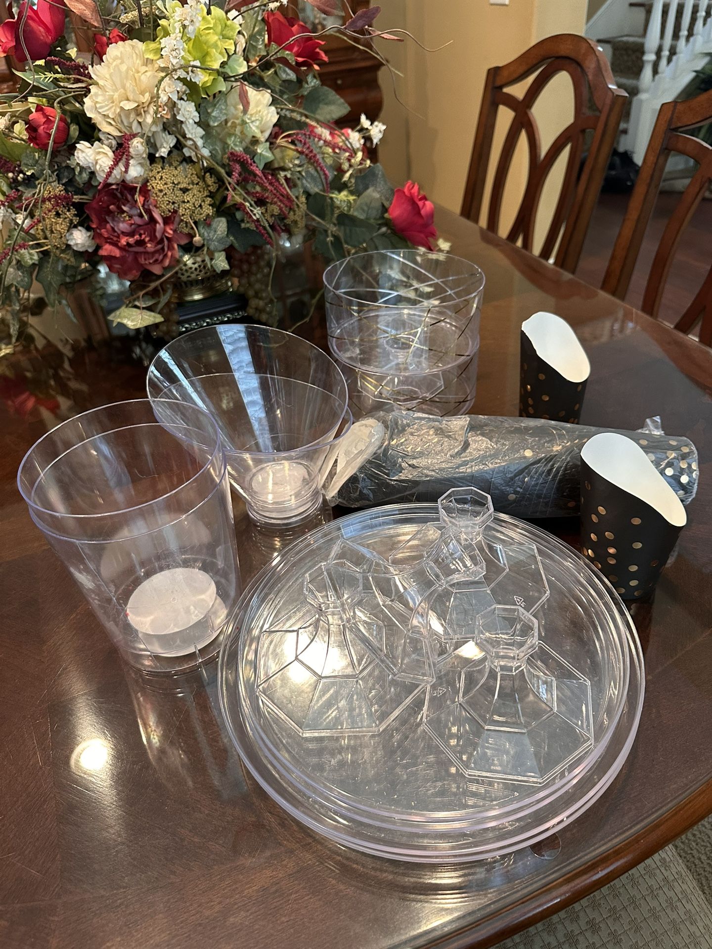 Great set of candy table accessories with black and gold dot candy holders (approx. 100)
