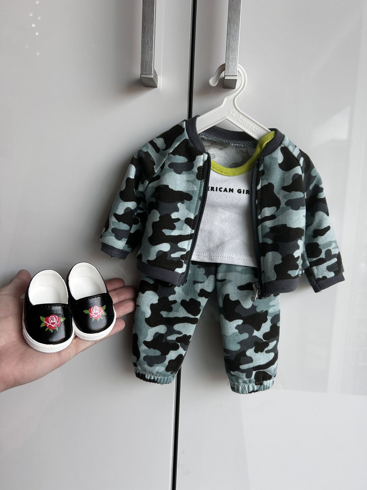 American Girl, Cool Camo Outfit. Includes sweatshirt, tank top, sweatpants, and shoes
