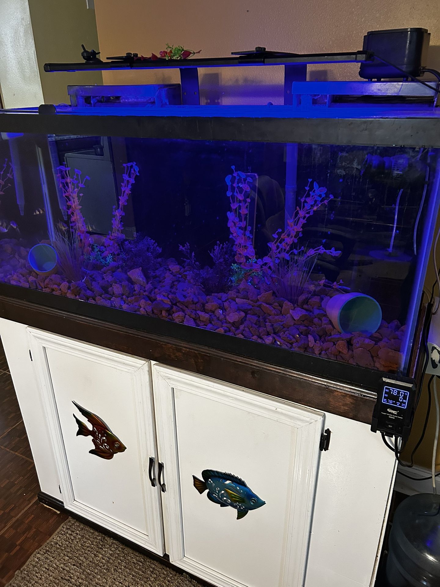 75 Gallon Fish Tank Two aqua clear filter, heater lights, air pump cabinet and more