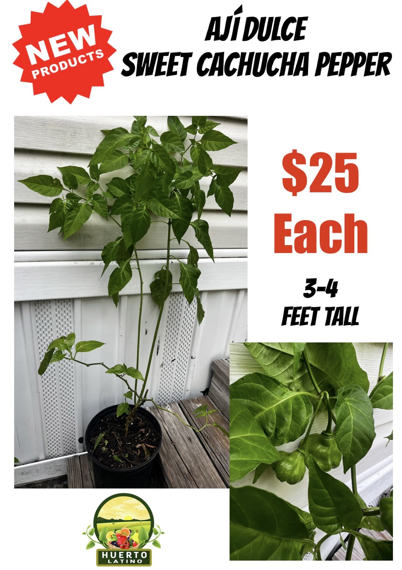 🪴 Planta de AJi Dulce La planta mide 3-4 pies de alto Algunas ya están produciendo $25 cada una PRECIO FIRME 🪴 Cachucha Pepper Plant The plant is 3-4 feet tall Some are already producing $25 each FIRM PRICE