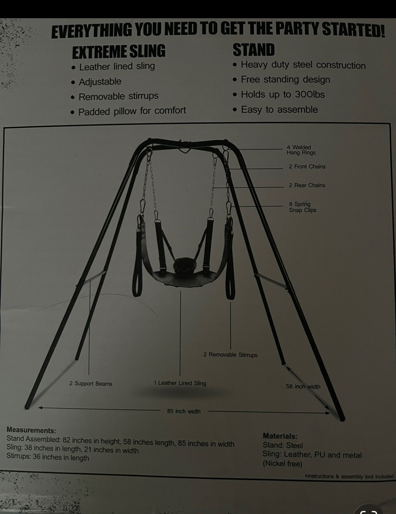 Adult swing, leather, adjustable, heavy duty. New usually goes for $800. Priced at $450 OBO