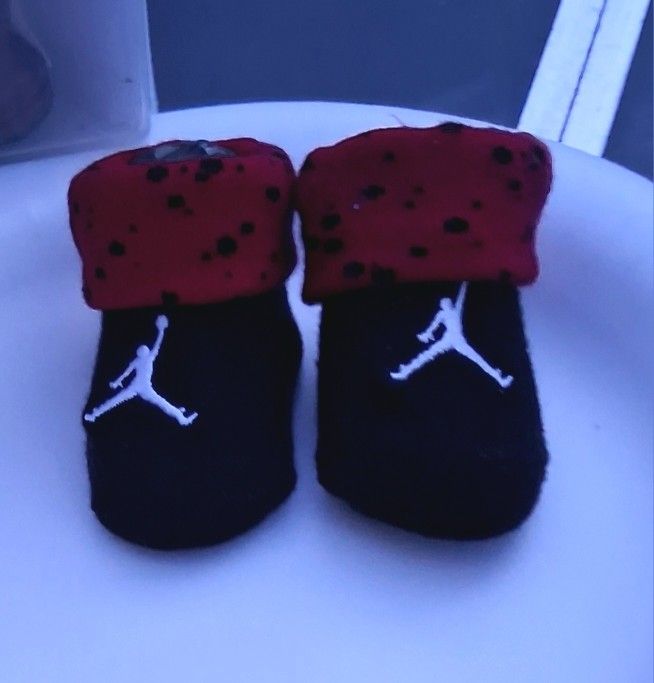 New • BABY JORDAN CUFF BOOTIE SOCKS • 0-6 mo. • Black w/ Red & Blk CUFFED.
