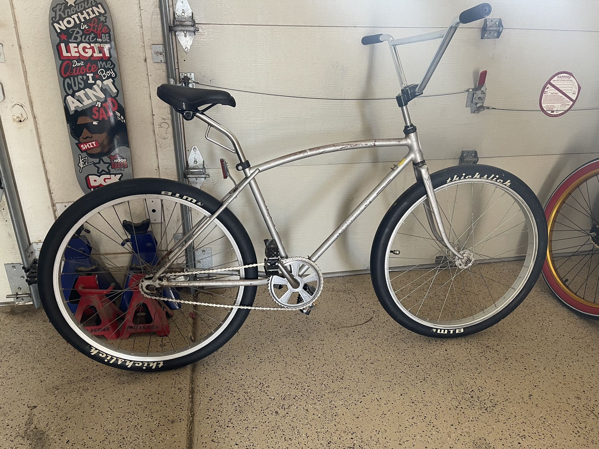 Silver schwinn camelback 26” frame. SE bars, new grips, chrome chain and oddessy pedals etc. asking $450 firm. No trades