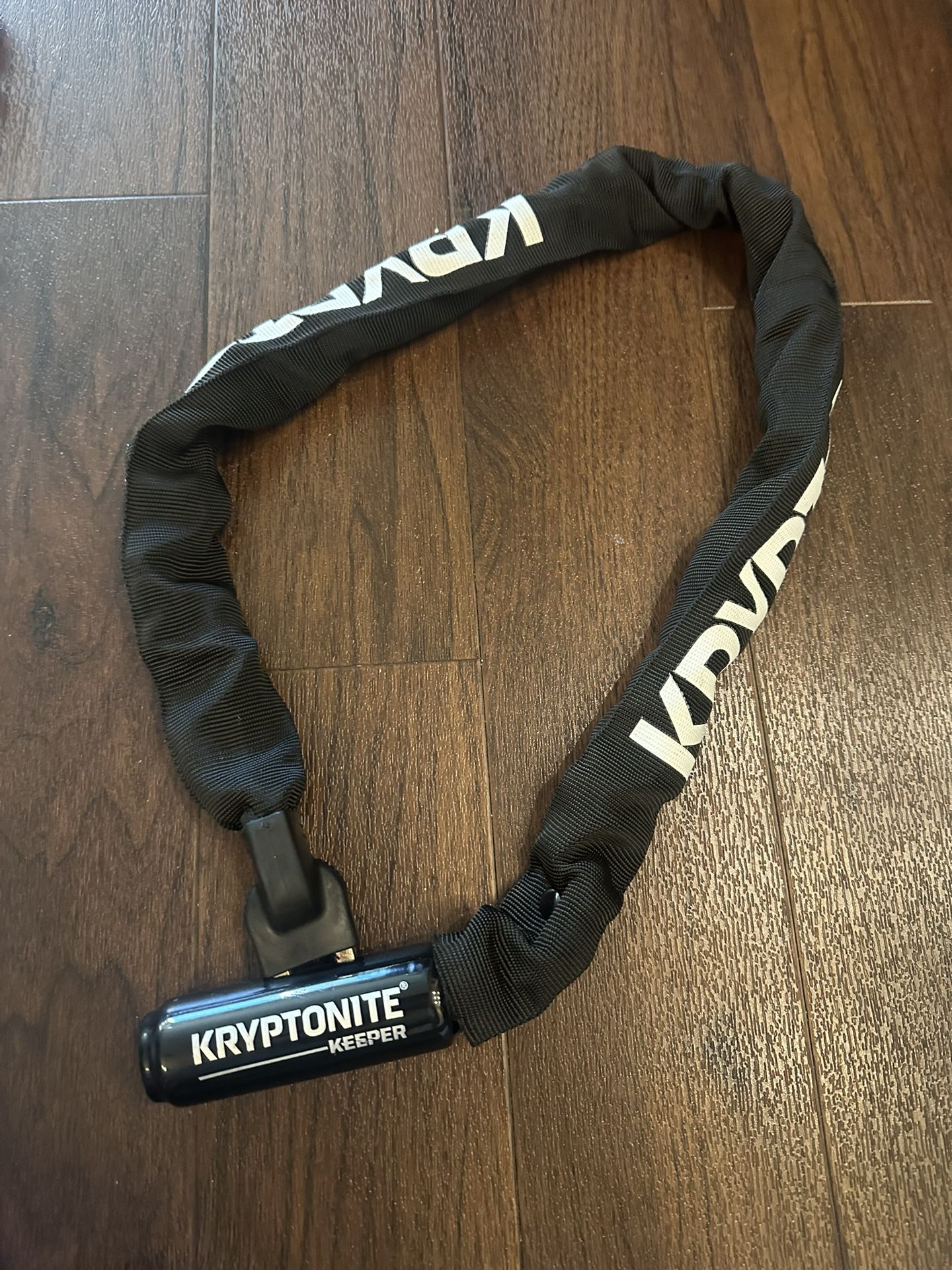 Kryptonite Keeper chain lock in great condition. Strong hardened steel chain with protective sleeve to prevent scratches. Includes key. Perfect for city bike security. Pickup in Seattle.