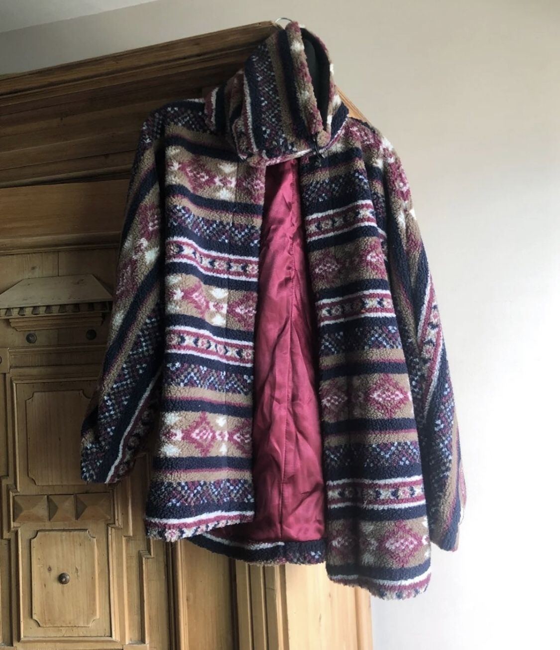 For those winter days, throw on this yummy over size open cardigan with matching snood scarf. Scarf has an adjustable band to make it as tight or loose as you like. Cardigan has a burgundy silk lining.