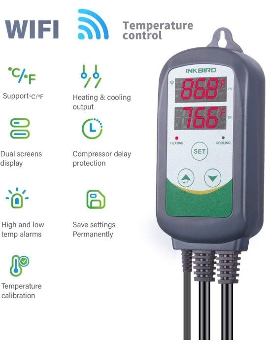 Inkbird WiFi ITC-308 Digital Temperature Controller Thermostat Remote Monitoring Controlling Home Brewing Fermentation Breeding Incubation Greenhouse
