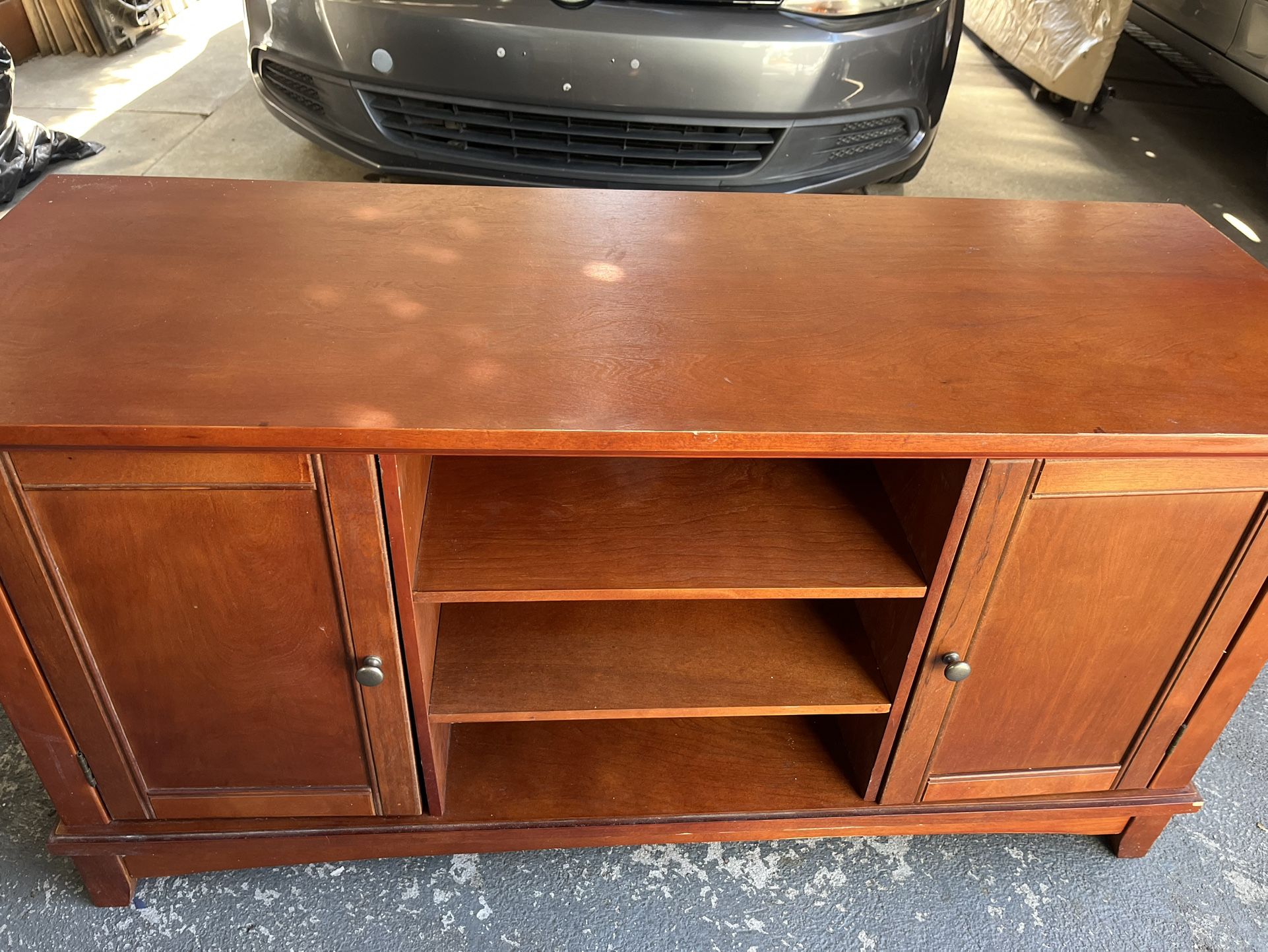 This cabinet needs some TLC perfect for someone who wants to recondition it the wood craftsman or woman or just someone looking for a project it’s a nice piece of furniture that’s needs that TLC the right door hinge pin is missing and the edge molding on the right is coming off. As Is project for the Do It Yourselfers . No sure what kinda of wood listing it for a friend who just loss his Mother.