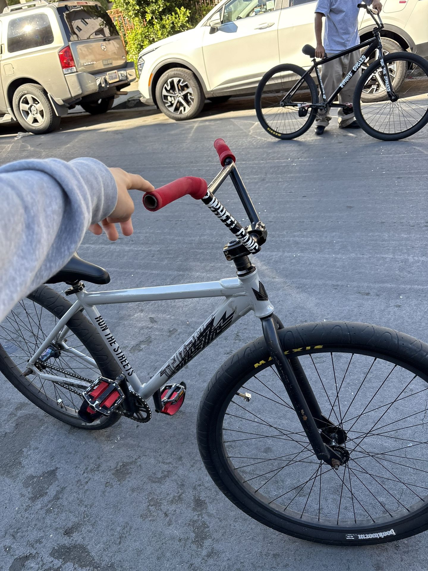 2wg bars Double maxxi Red straps Stock throne seat Purple smash hub
