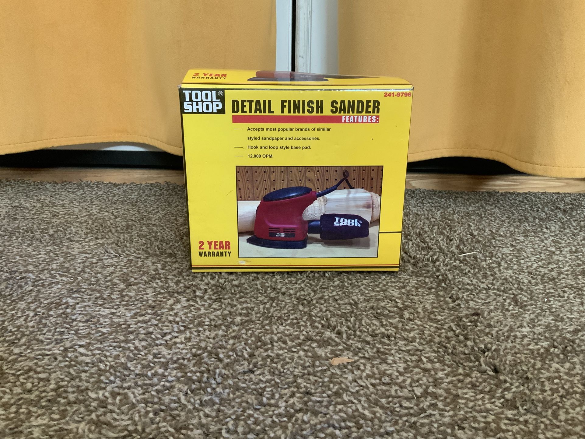 This Tool Shop® sander is the perfect tool for all types of detail finish sanding, from general sanding to sanding tight corners and curved shapes that other sanders can't accomplish. It operates at 12,000 orbits per minute (OPM) for fast, efficient sanding and includes a sealed on/off switch for durability. The hook-and-loop sanding pad makes for quick and easy sandpaper changes, and the efficient through-the-paper dust collection system helps maintain a clean work surface when connected to a vacuum (sold separately). Features * 0.8-amp motor * Operates at 12,000 OPM (no-load speed) * Dust-sealed on/off switch * 3-3/4" x 5-1/2" 5-hole hook-and-loop pad * 6' cord * Includes: sander, 3 sanding sheets, and vacuum adapter * 1-year limited warranty * Brand and model may vary New in box, never used.