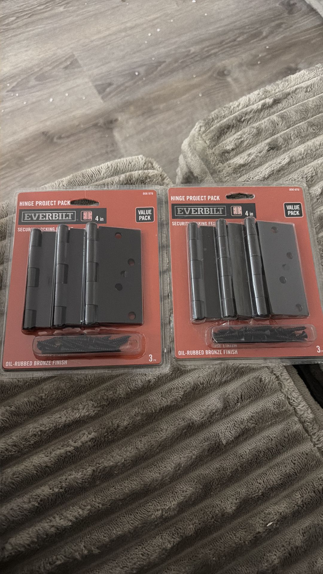 Brand new Everbilt 3.5” door hinges (3-pack) – bright brass finish. Includes screws and security locking feature. Never used, still sealed in original packaging. Perfect for interior door replacement or upgrade. $10 for both– pickup available.