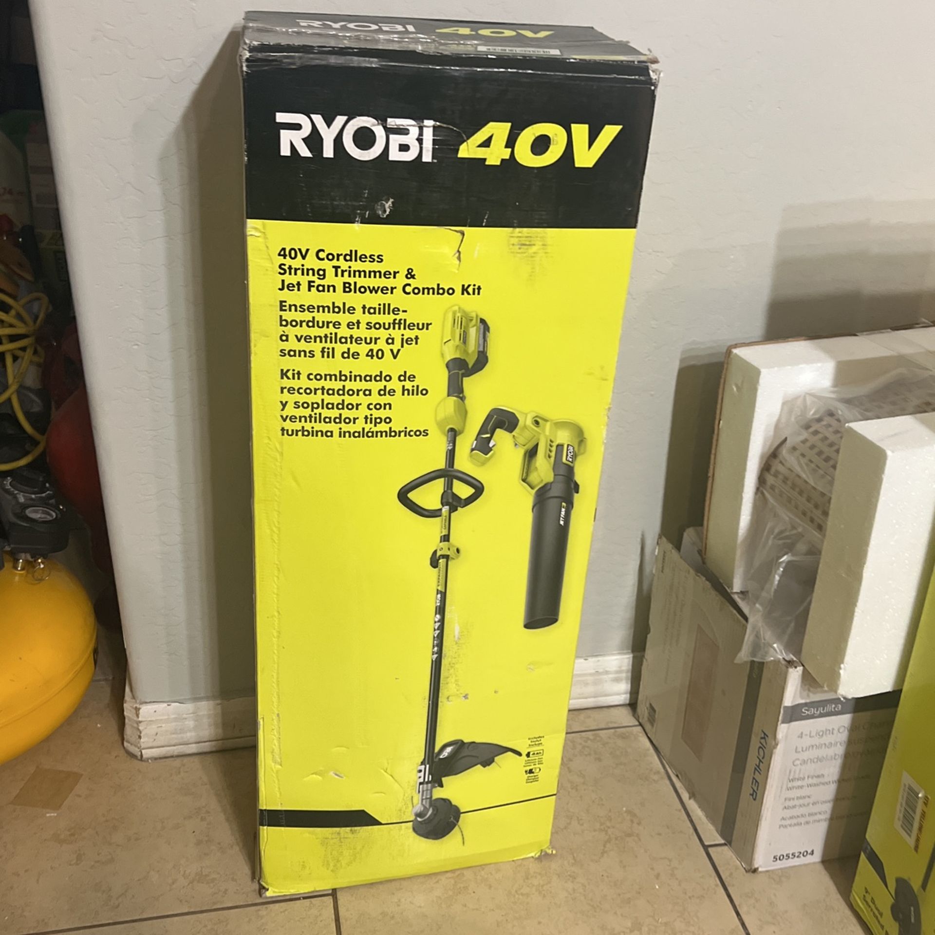 IT IS NEW / ESTÁ NUEVO 40V Cordless String Trimmer & Jet Fan Blower Combo Kit Ensemble taille- bordure et souffleur à ventilateur à jet sans fil de 40 V Kit combinado de recortadora de hilo y soplador con ventilador tipo turbina inalámbricos