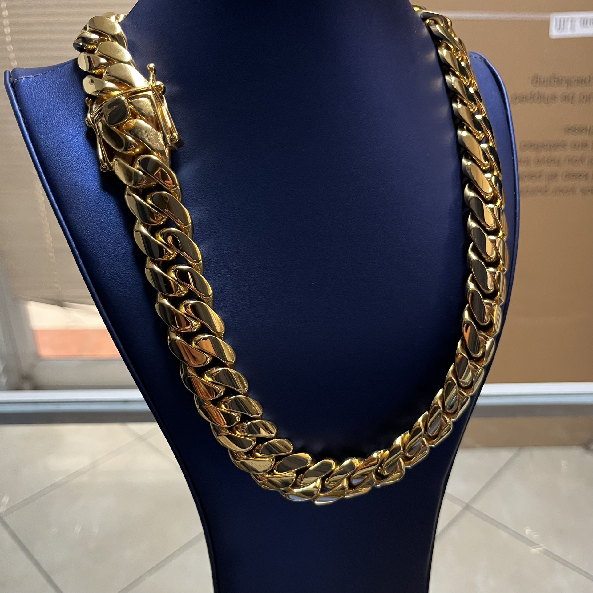 We only handmake all of our Cuban link chains in-house. NOTHING is outsourced The best quality you’ll find in both construction and plating in the market. Our gold layer is THICK, making them pool and ocean safe. They feel and look IDENTICAL to solid gold Come to our shop and take a look for yourself. Contact us today