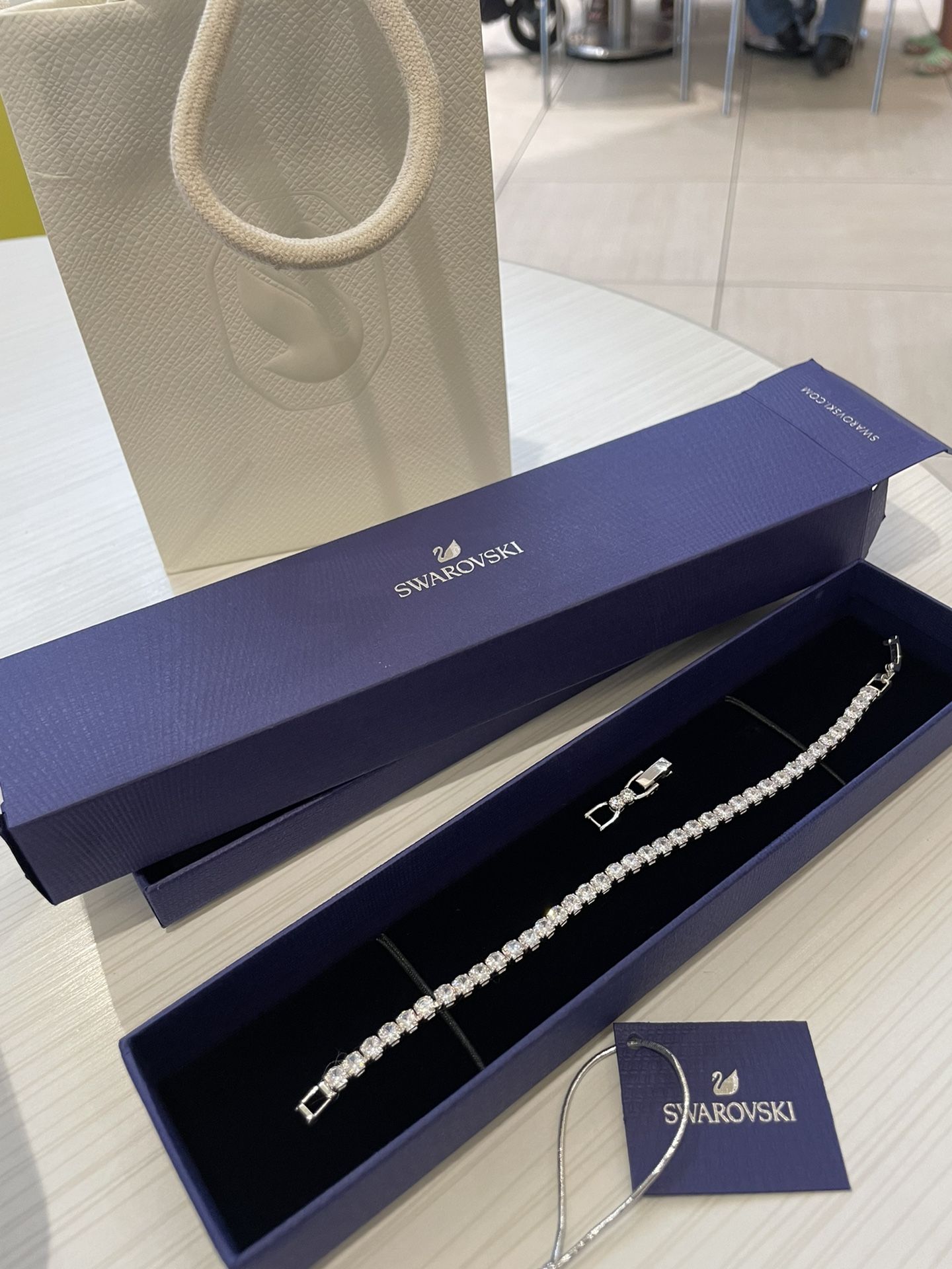 SWAROVSKI tennis Bracelet New In Box. Immaculate condition. Adjustable with extension attachment