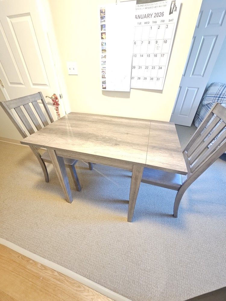 Have a mint kitchen table with 2 matching chairs...the dropleaf extends out on ends of table to make bigger...100 takes it