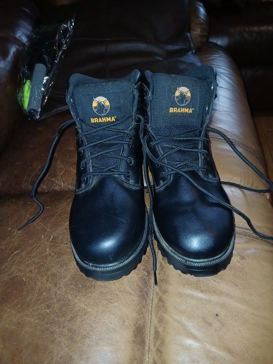 - perfect for any man who needs a reliable pair of boots for work - features s solid black pattern and lace-up closure - the round toe shape and wide shoe width provide comfort and flexibility for all day wear - made with synthetic upper and slip-resistance features, these boots are perfect for any season - in great pre-owned used condition - come from a pet and smoke-free home