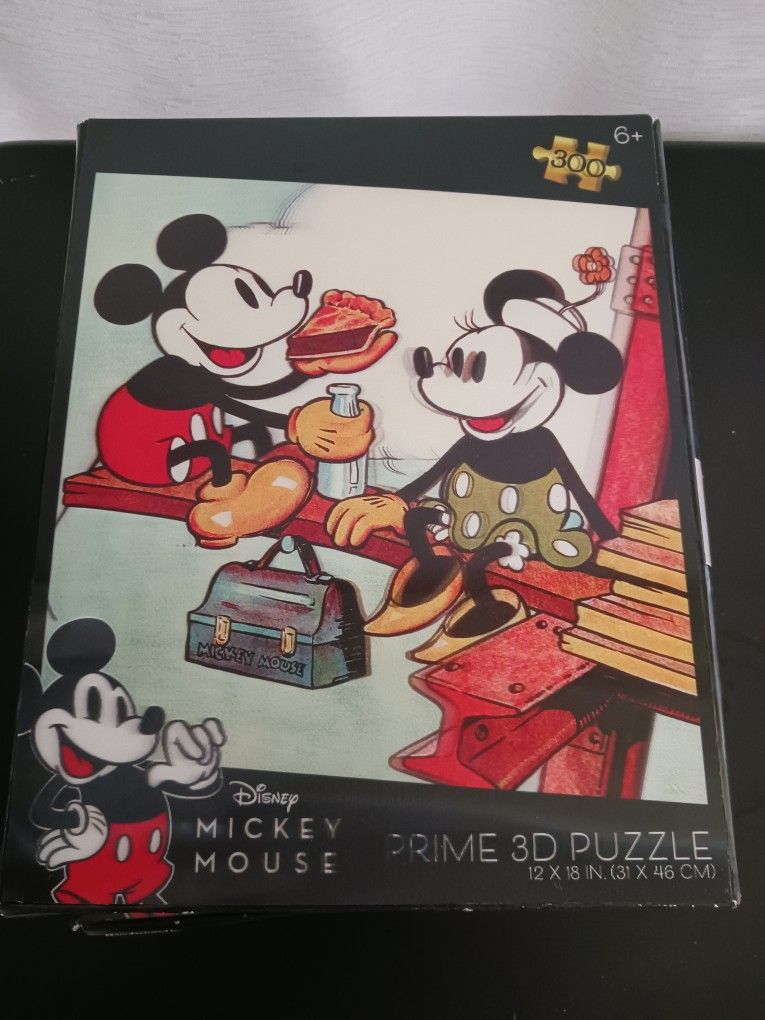 Mickey and Minnie Mouse 300 Piece Puzzle Complete Jigsaw Vtg Character Walt Disney. Prime 3D puzzle. 12" x 18 " ( 31" x 46" cm) Box has been crushed on edge. New never opened. Please review pictures. Please feel free to ask questions. Thank you