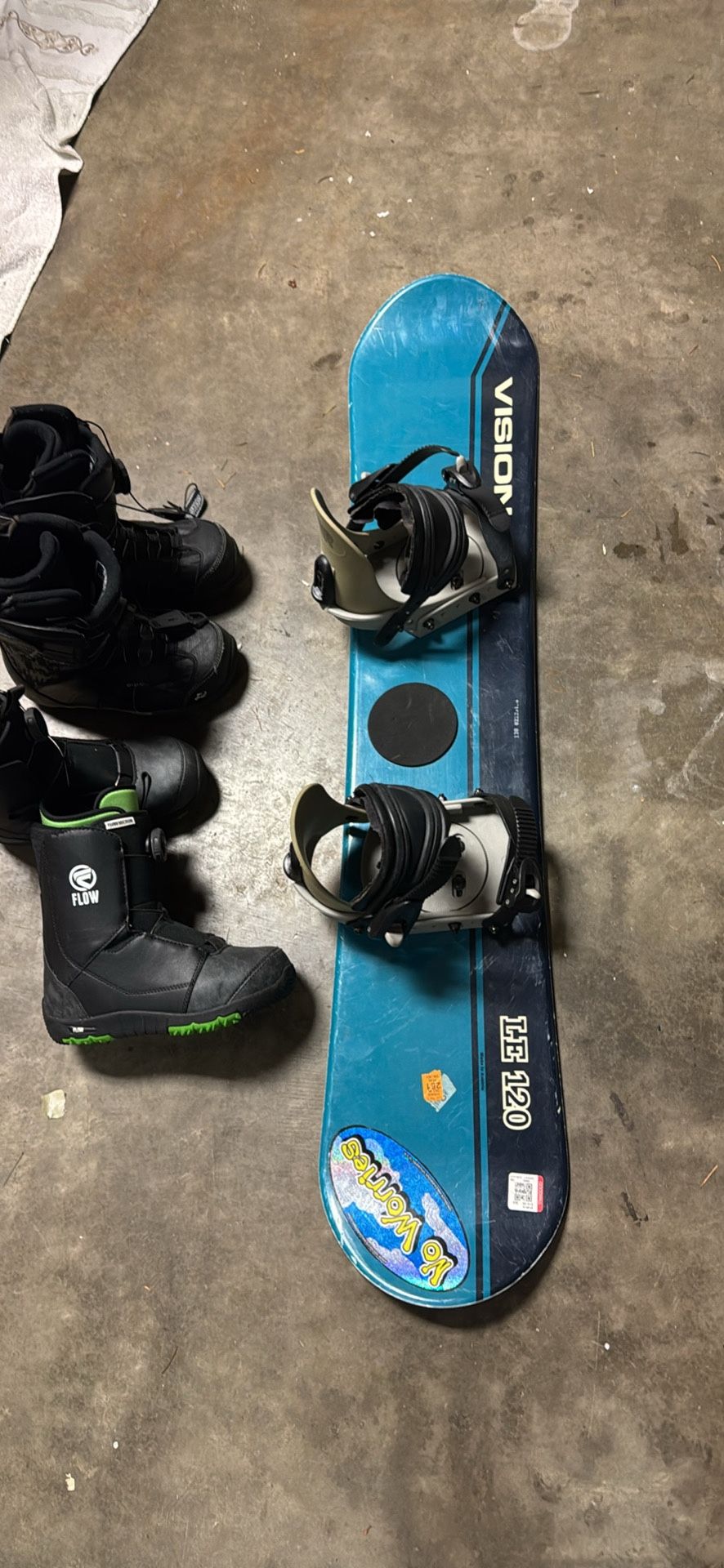 For Sale is one snowboard, one pair of bindings, and one pair of boots. If it listed, it means it’s still available. Other sizes of boots and snowboards are available. If you need anything else please check my other listings I have snowboards, skis, boa boots,boots, ski boots, ski poles, helmets, pants, jackets, and other snow gear. Feel free to message me if you have any questions.