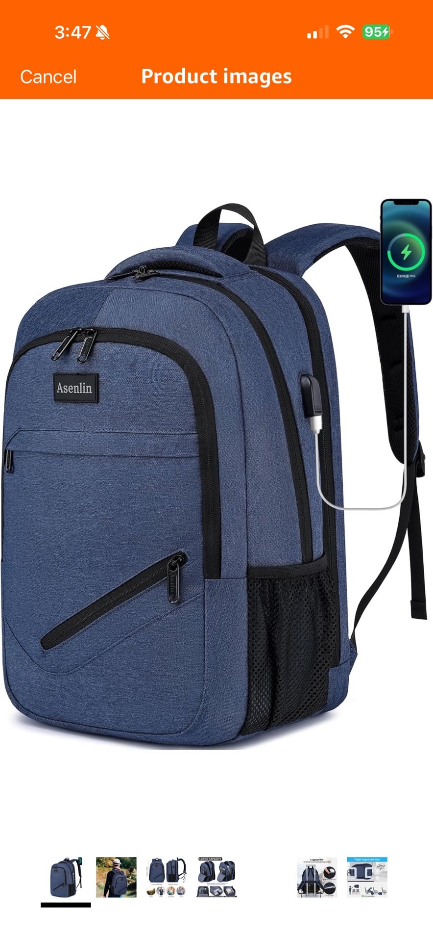 Asenlin Travel Laptop Backpack for Women & Men,Water Resistant Business Slim Sturdy Laptops Backpack with USB Charging Port,Fits 15.6 Inch Notebook Co