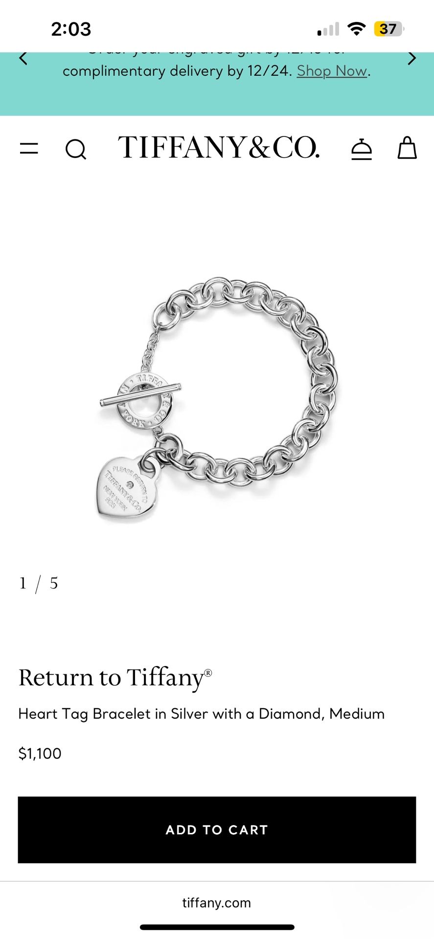 Genuine Tiffany & Co. Heart Charm Bracelet with Diamond Accent ✨ Stamped & Verified Sterling Silver. Lightly worn, still shines beautifully! Makes a perfect Christmas gift.