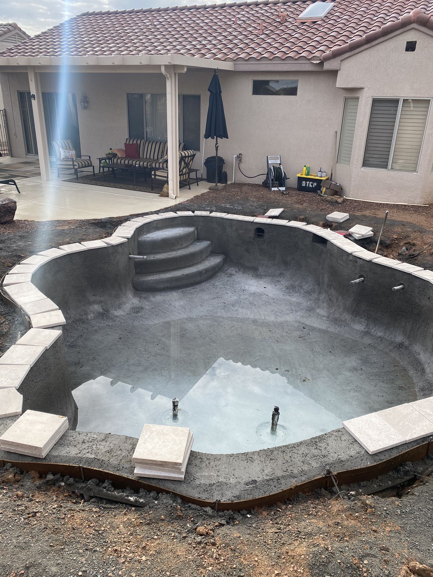 Pool Coping Travertine And Waterline Tile