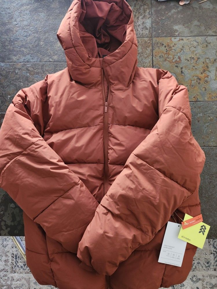 Hooded Womans Bronze Puffer Jacket Size M