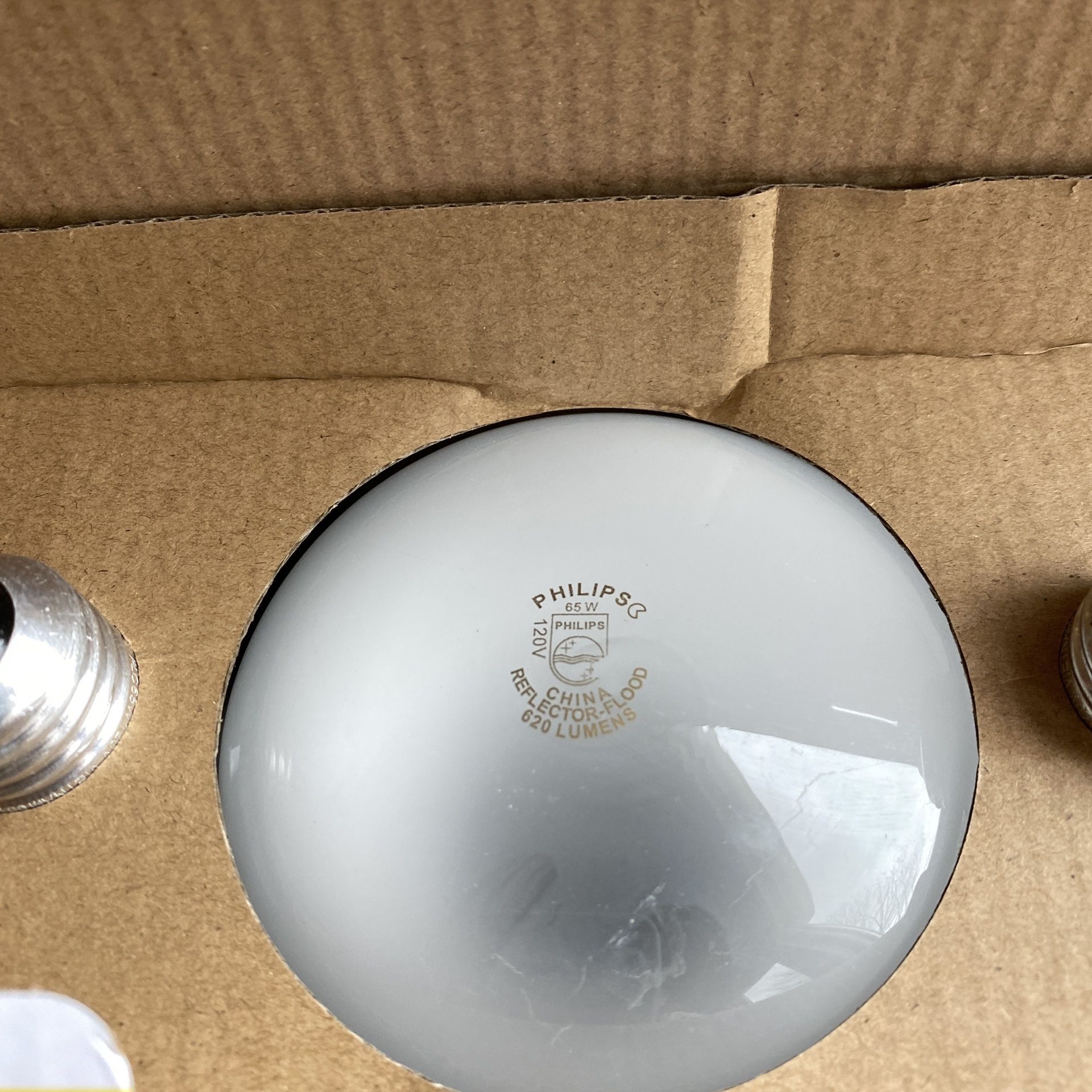 Lightly used 65W soft white dimmable flood light bulb. $1 each. 48 bulbs available.