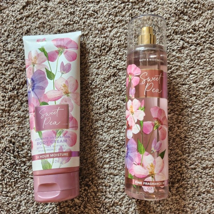 New SWEET PEA Bath & Body Works Fragrance Mist Spray 8 oz + Body Cream 8 oz