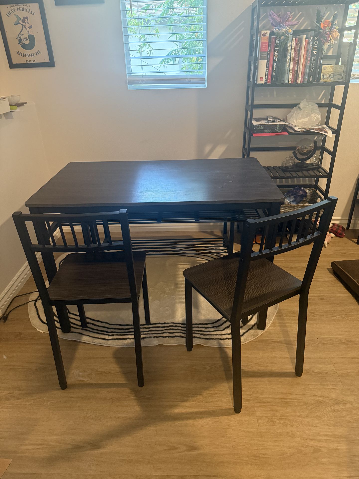 Kitchen table in great shape. Comes with 2 chairs and a bench. There are S hooks for under the table as well