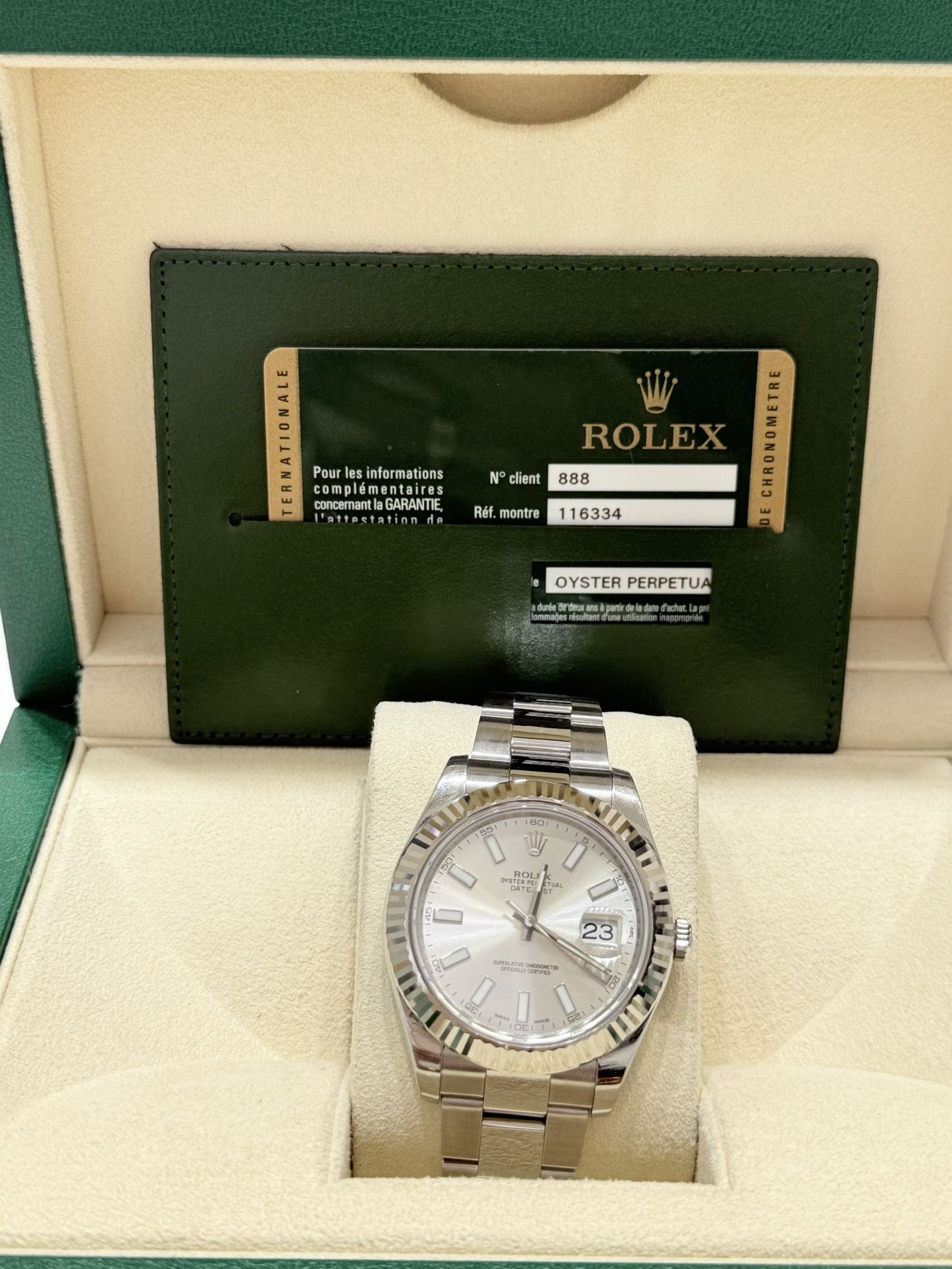 2014 Rolex pre owned 41mm DateJust II Silver Stick Dial-W/Card