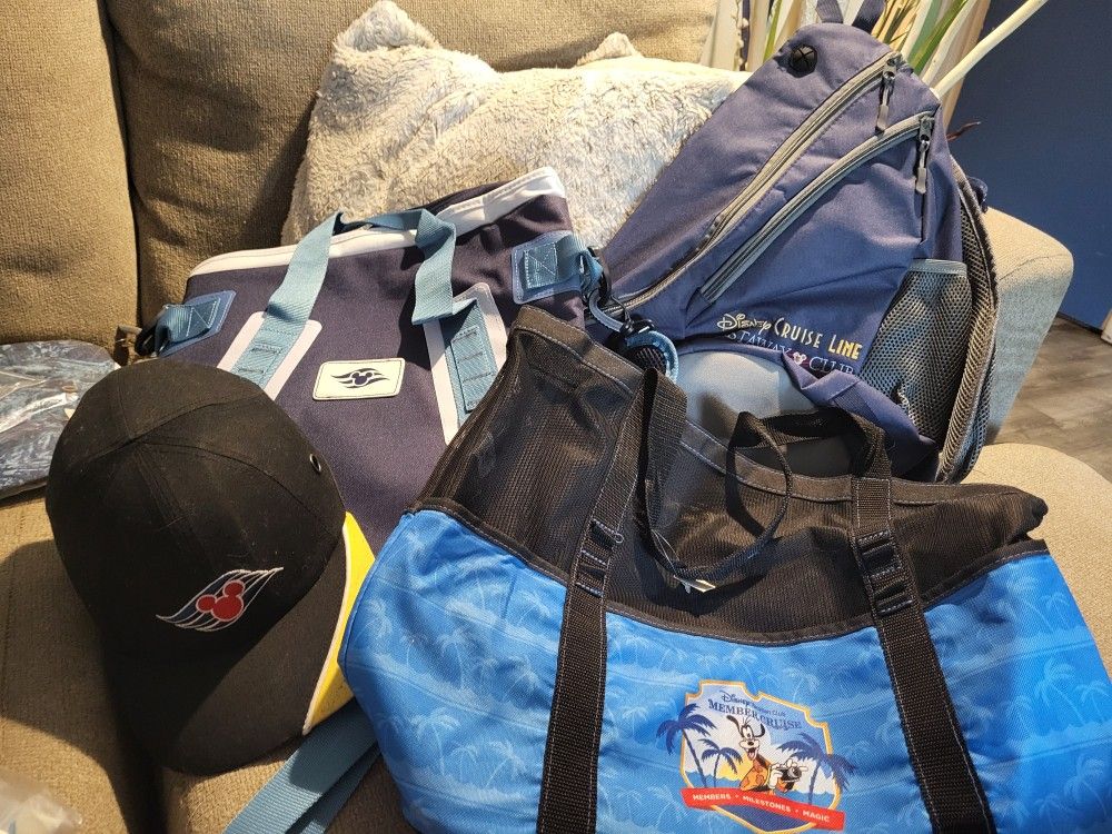 Straight from the cruise line Disney cooler bag. $20 Disney back pack $15 Disney bag $15 Rare and hard to find Disney hard hat $40,(please let me know if you find another one like it)