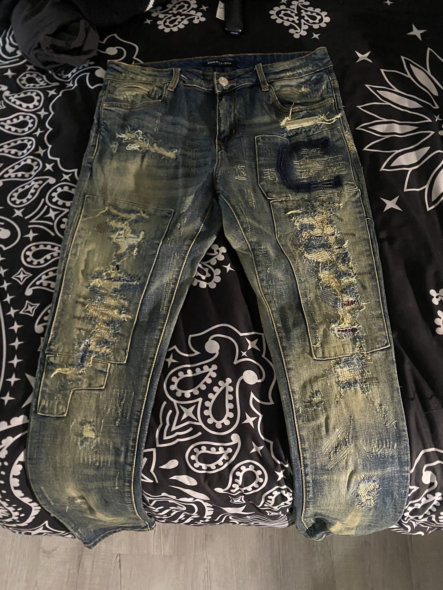 Embellish Premium Men's Blue Design Patchwork Distressed Slim Fit Denim Jeans 34 NWT never worn Pick up or ship Please let me know if you’re interested