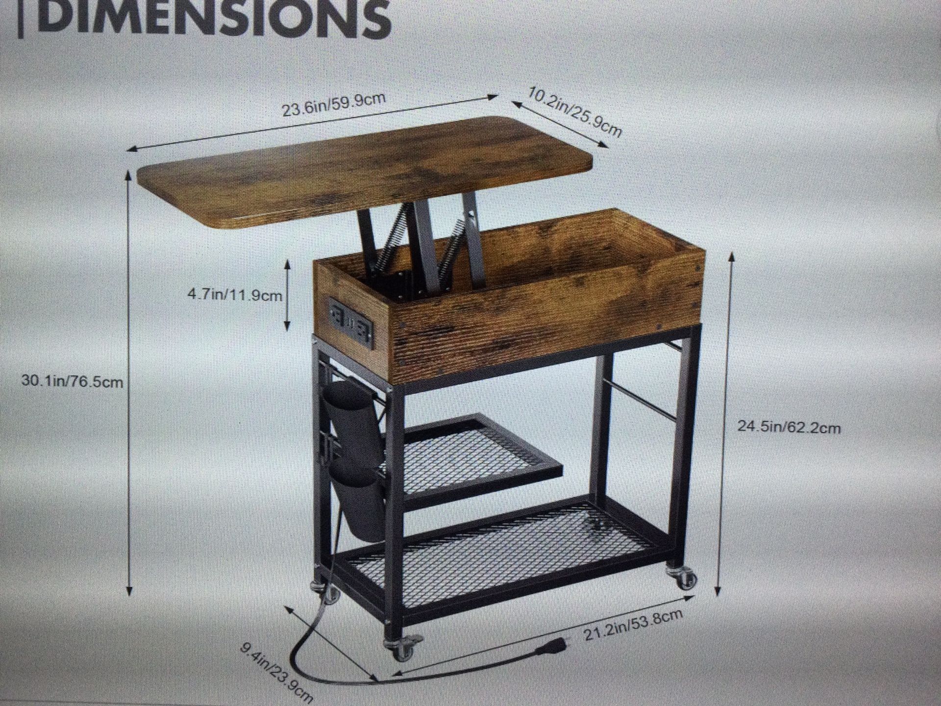 TOP LIFT END WITH CHARGING STATION AND WHEELS, SIDE TABLE W/USB PORT OUTLETS …ASSEMBLED NEVER USED RETAILS