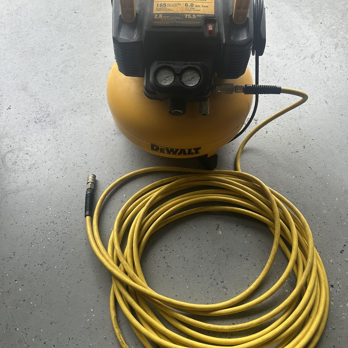 DeWalt air compressor 6 gallon 165 psi with 50 foot hose.