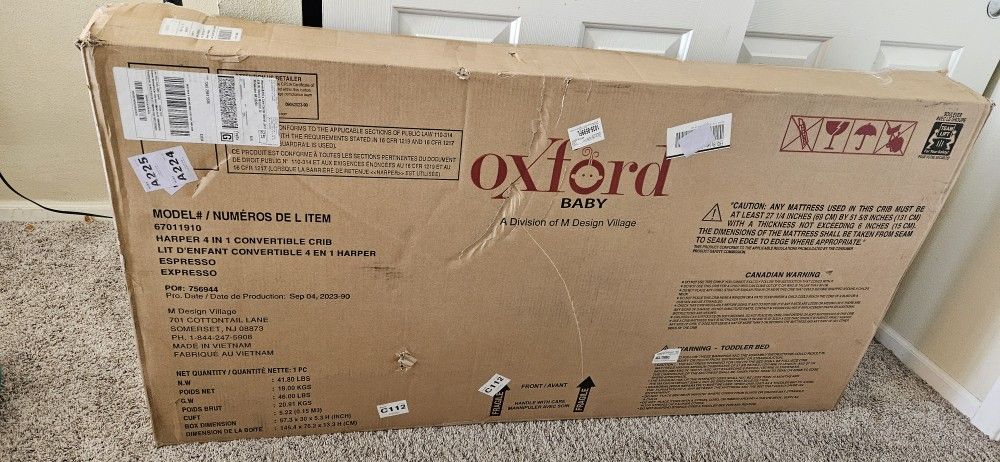 Oxford Harper 4 In 1 Convertible Crib - Open Box