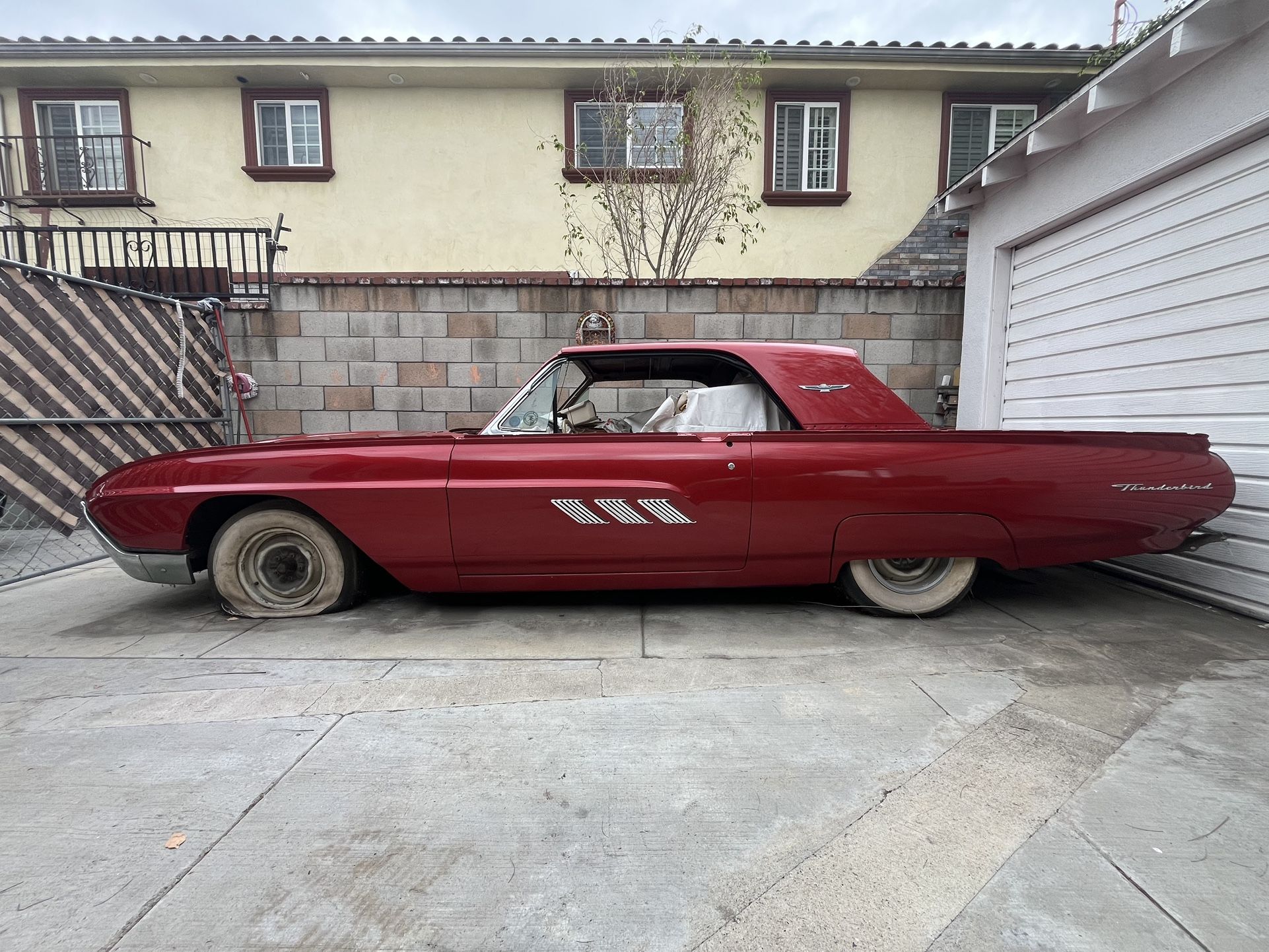 ** SELLING FOR MY FATHER IN LAW since he doesnt have social media. 1963 ford thunder bird v8 He took it apart and got it painted about 3/4 years ago and has had it covered since. Alot of parts are refurbished or new.(interior and exterior) He has gotten the dash and seats redone. Has brand new carpet and floor matts. Chrome redone or new parts. He has everything for it but one chrome piece that goes around the tail light cause the body shop that painted it lost it. He said its about 50-80 bucks online for that part. and the headliner needs to be redone. Car hasnt started in 2 years but was driving great before he parked it. Im pretty sure The registration has fallen off the system die to it not being registered for a long time. But he does have the pink slip and paperwork. Obviously his plan was to restore it but never got around to it . Reason for selling it is he lost interests due to not having time to put it back together . If your interested or got any question feel free to send me a mssg He is asking 6k obo