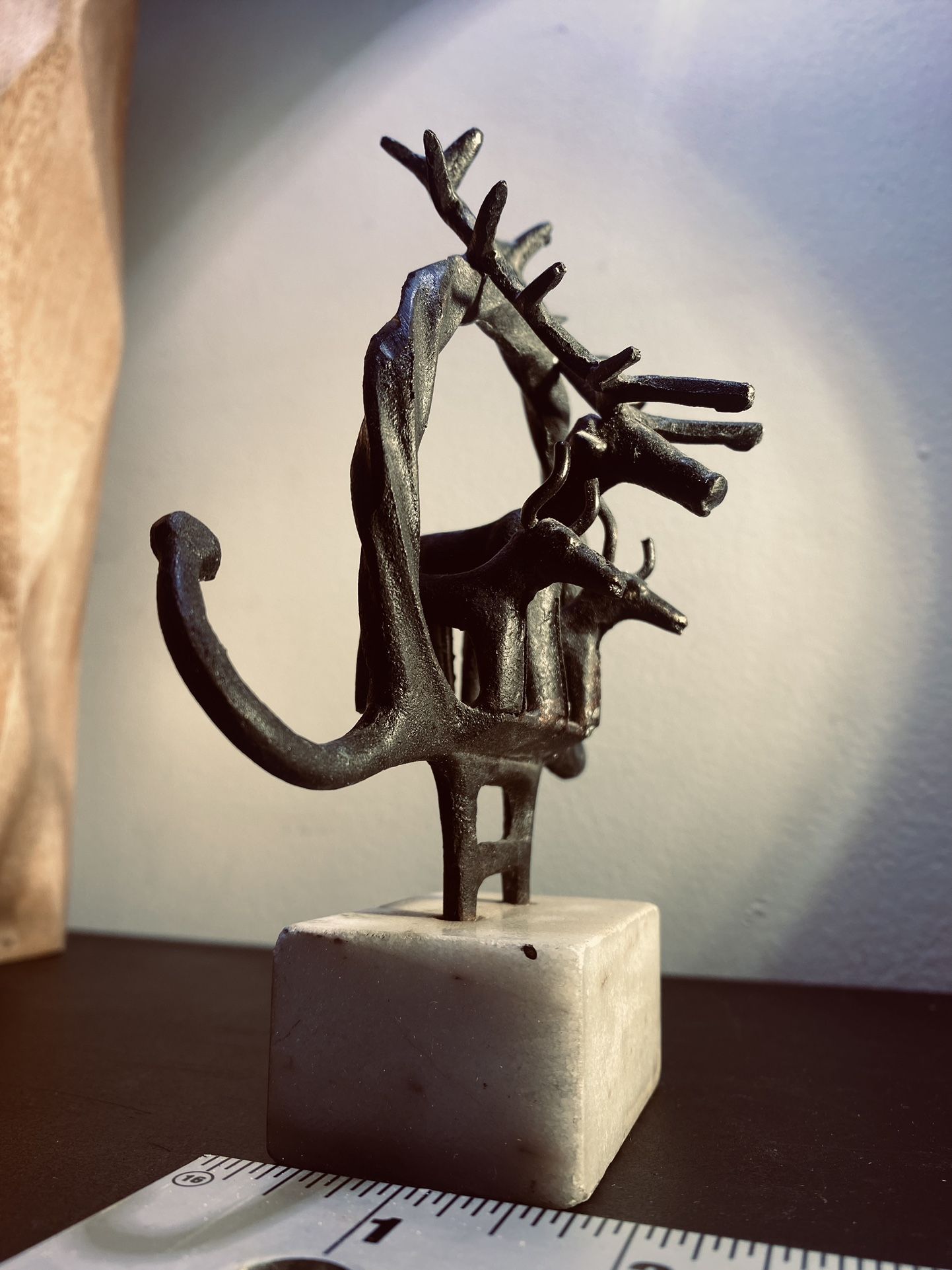 Rare Find! Vintage Anatolian Cast Iron Ceremonial standing on Marble, Ankara decor