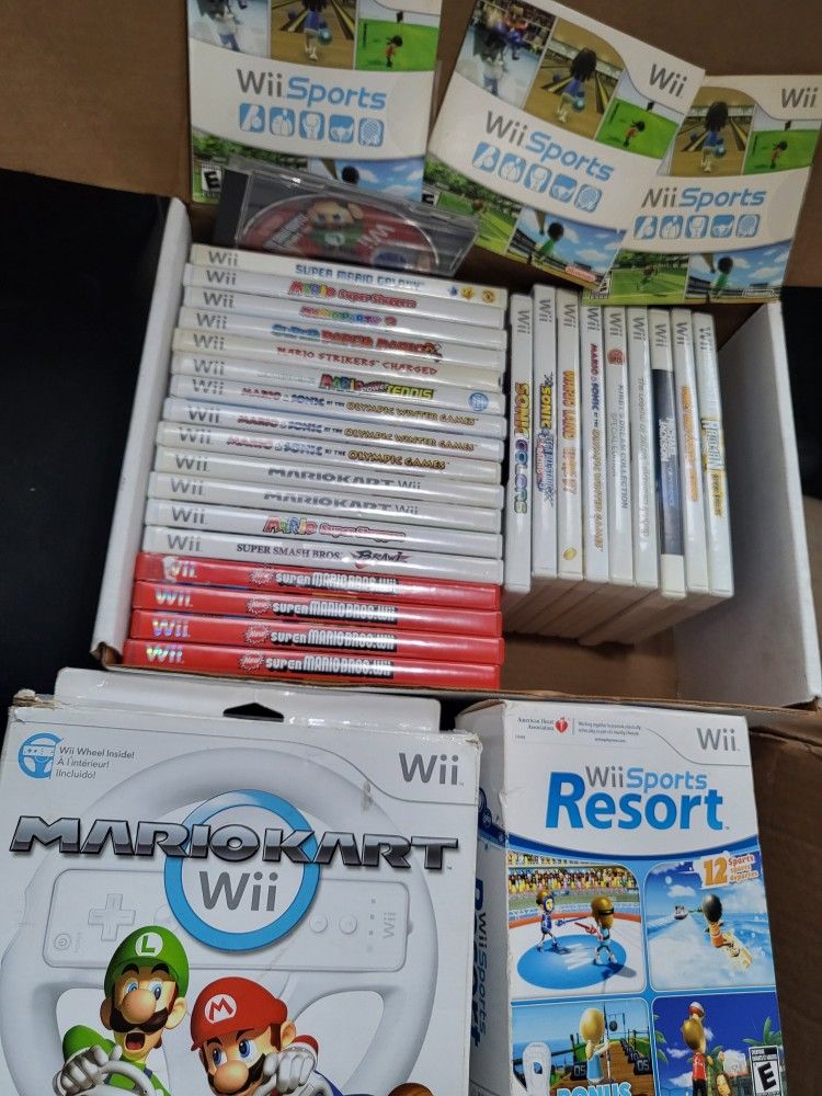Nintendo wii games Mario, wii sports, sonic, just dance, kirby. Donkey Kong, all different prices. All games are different prices 10.00 to 40.00 each Wii sports 30.00 Sports Resort 35.00 Mario kart 35.00 Mario party 9 45.00 New Super Mario Bros 30.00 Super Paper Mario20.00 Super sluggers 35.00 Smash bros brawl 25.00 Mario and sonic games 17.00 Super Mario Galaxy 18.00 Michael jackson 25.00 Just dance games 20.00 to 20.00 each Message if you need other prices. Pick up is in yorkville.
